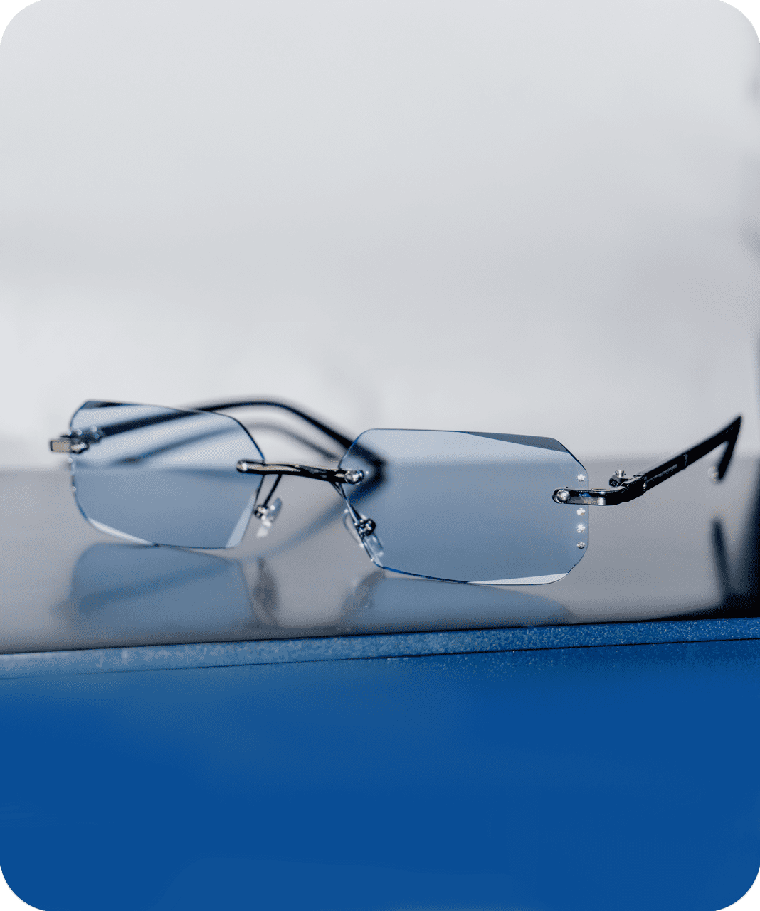 The  Diamond Cut Rimless features a unisex alloy frame, ideal for reading, decorative, or corrective lenses. Customize your look with optional rhinestones. It supports various lens types and requires PD value for assembly, ensuring a personalized fit.